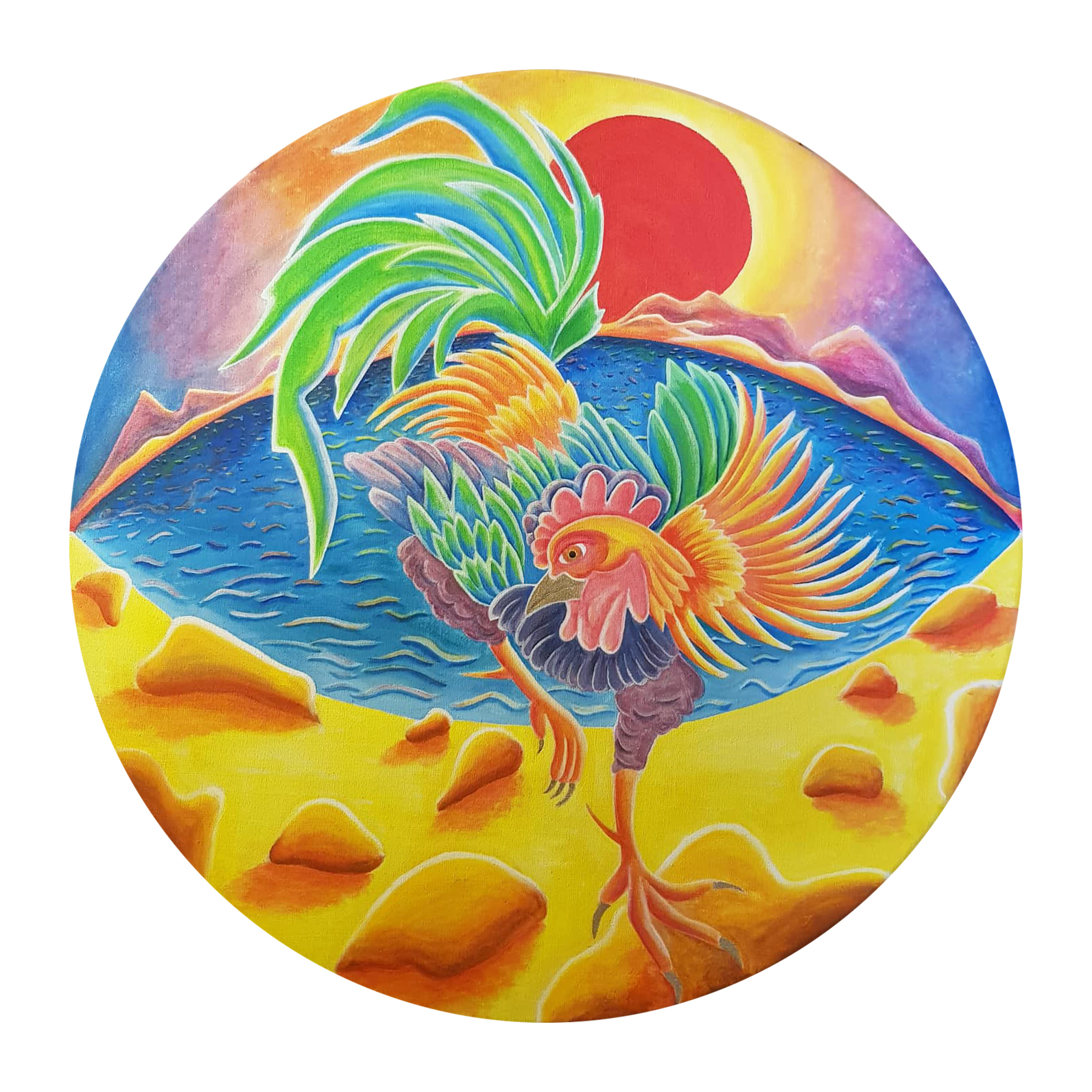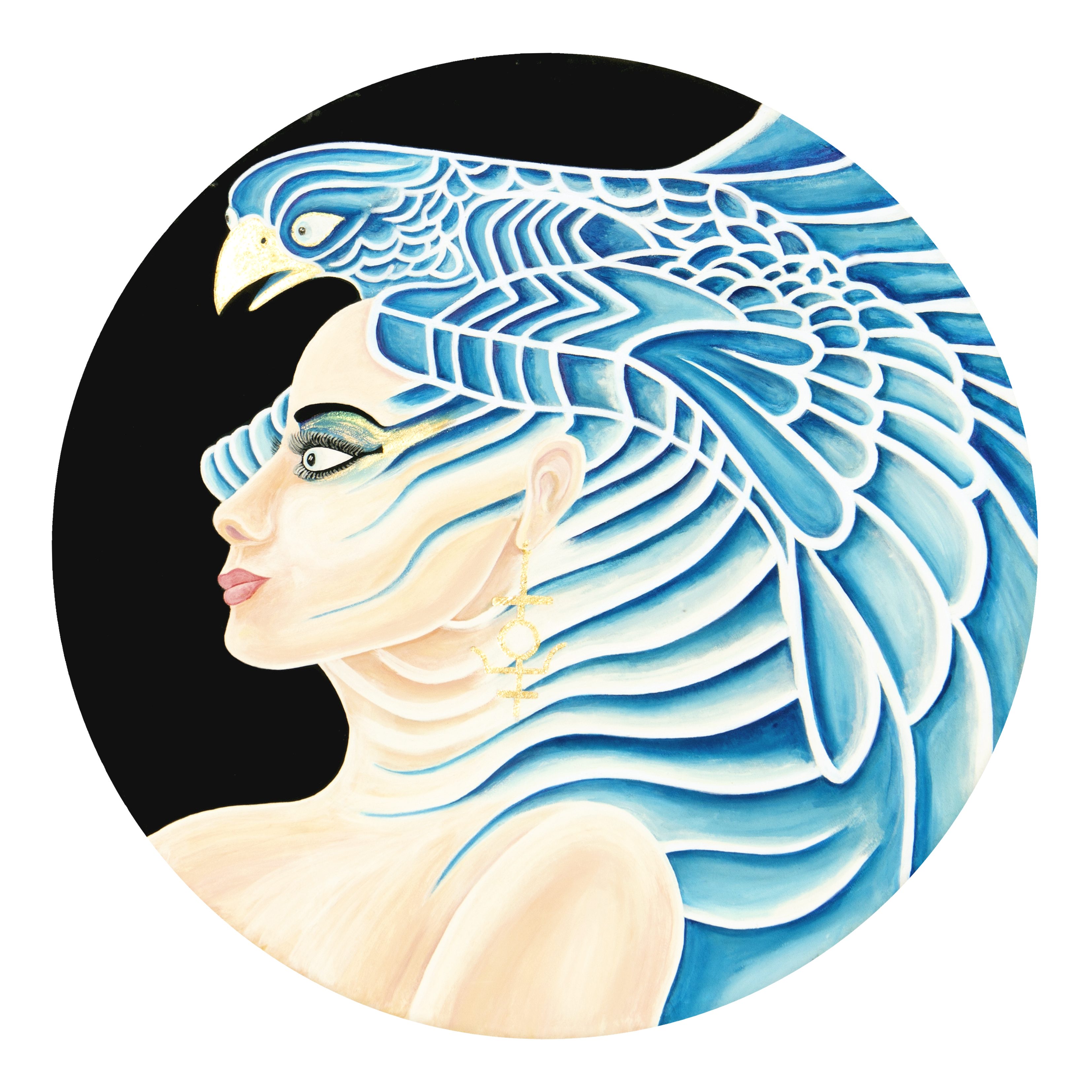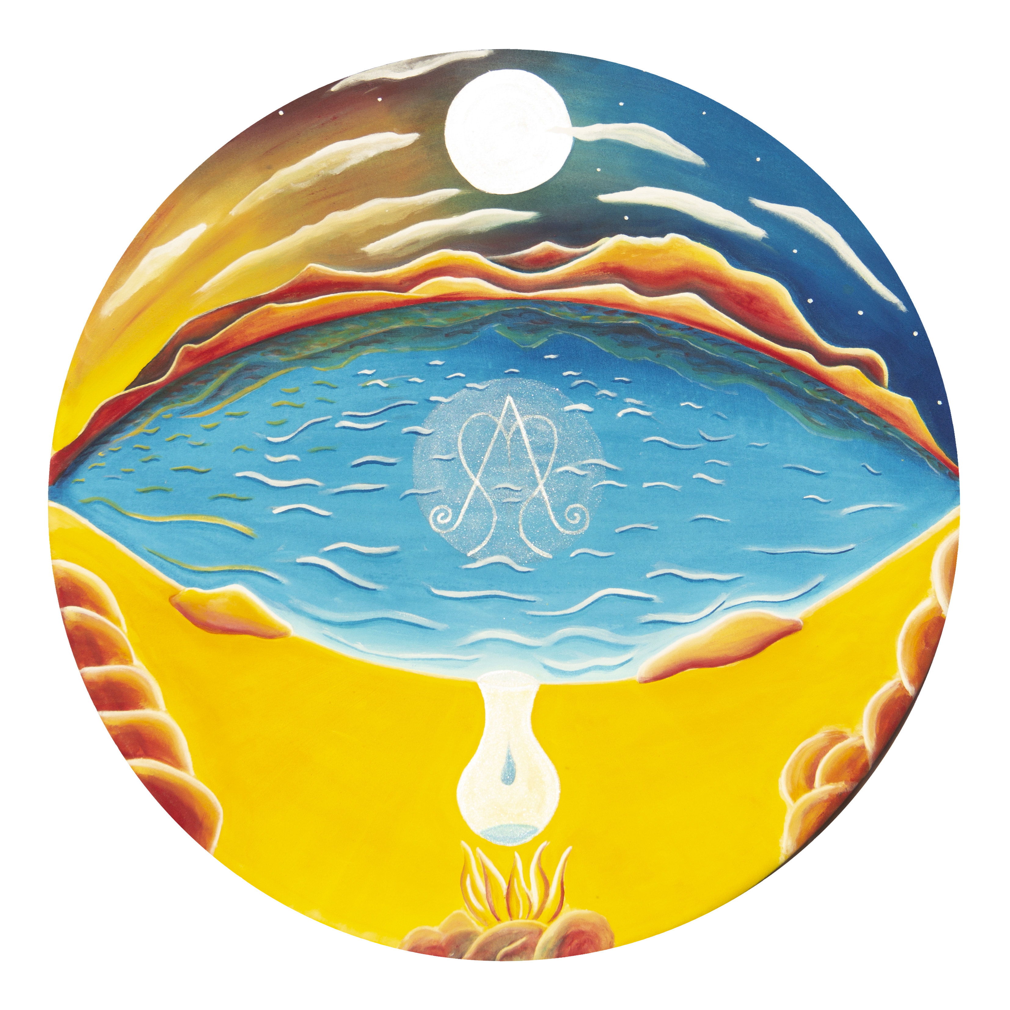 Acrylic and metallic paints, on high quality cotton canvas. 770 mm diameter. For full photo gallery please see the Art page, or contact directly for more information.