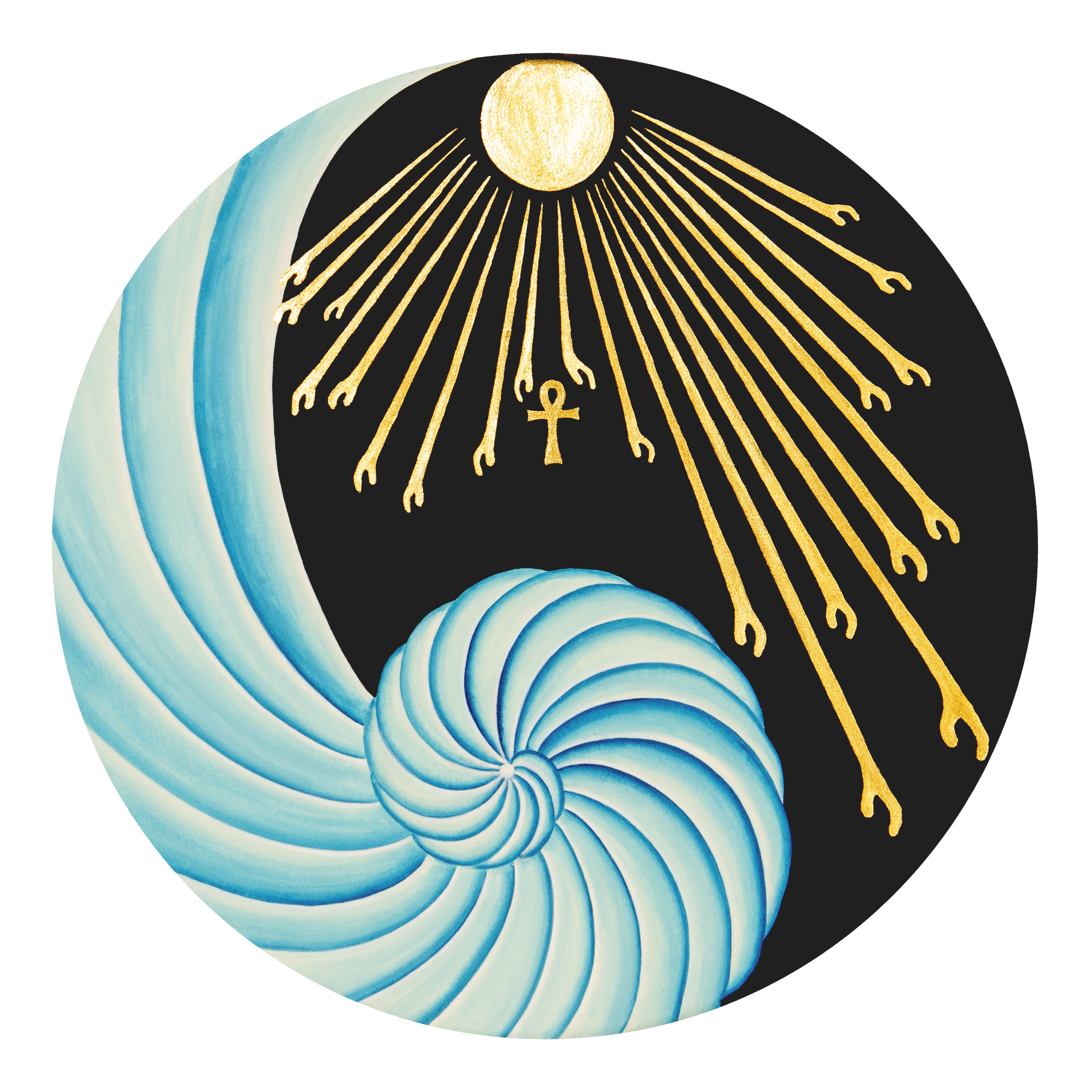 Acrylic and metallic paints, on high quality cotton canvas. 770mm diameter. For full photo gallery please see the Art page, or contact directly for more information.