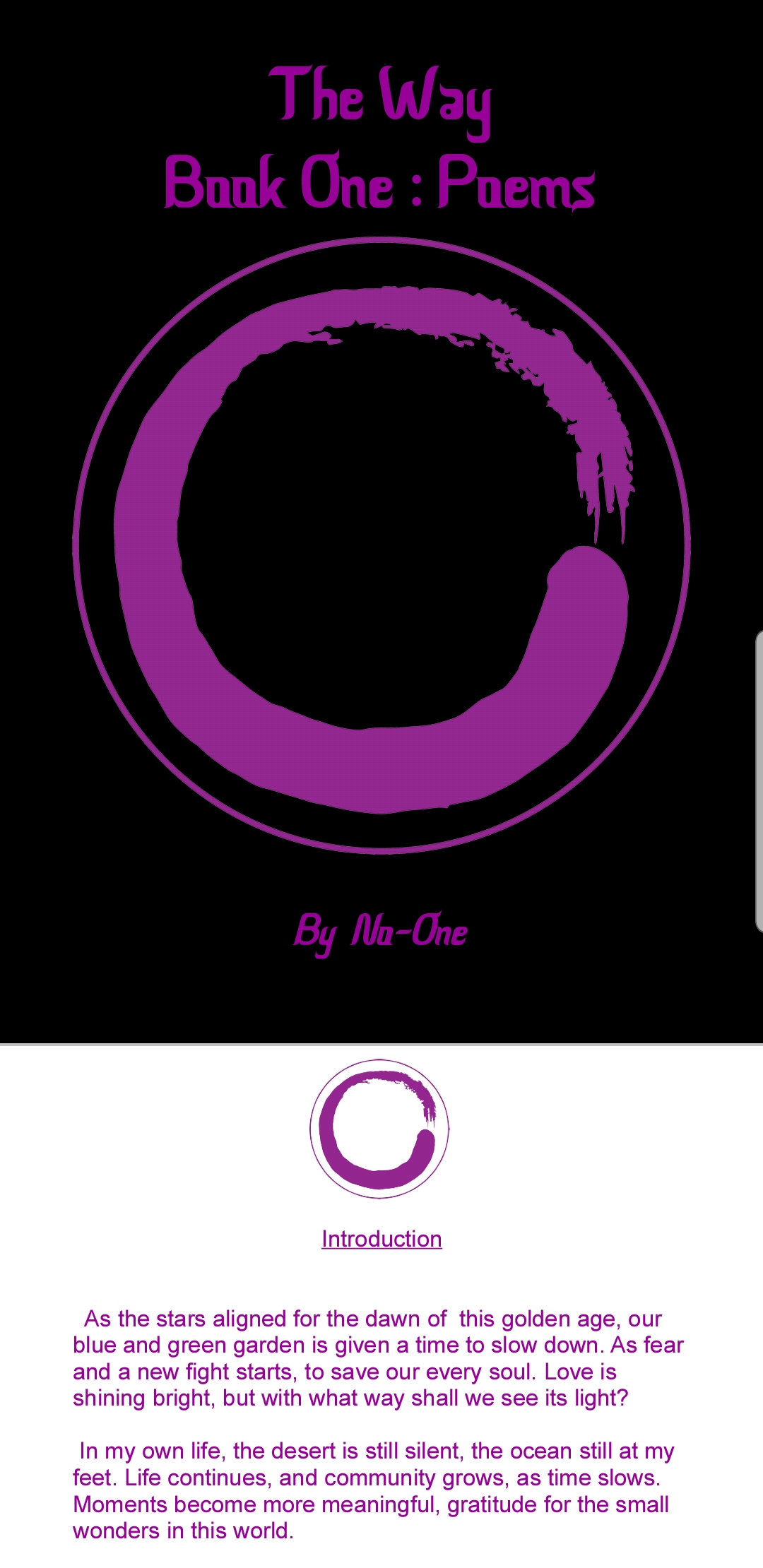 Book 1 contains the poems and words, channelled and clear. The messages, came through me, and the more I dissolved, nothingness grew, leaving a space for my spirit to renew. Each poem a reflection, a moment of no time, in which the elements guide, and the path of love is revealed. Zen paradoxes, mysterious tales, all interwoven, in this magical tapestry. Take a moment out of time. Read over 70 Poems, that let the truth shine in. Current price direct from author, is for a PDF digital version.