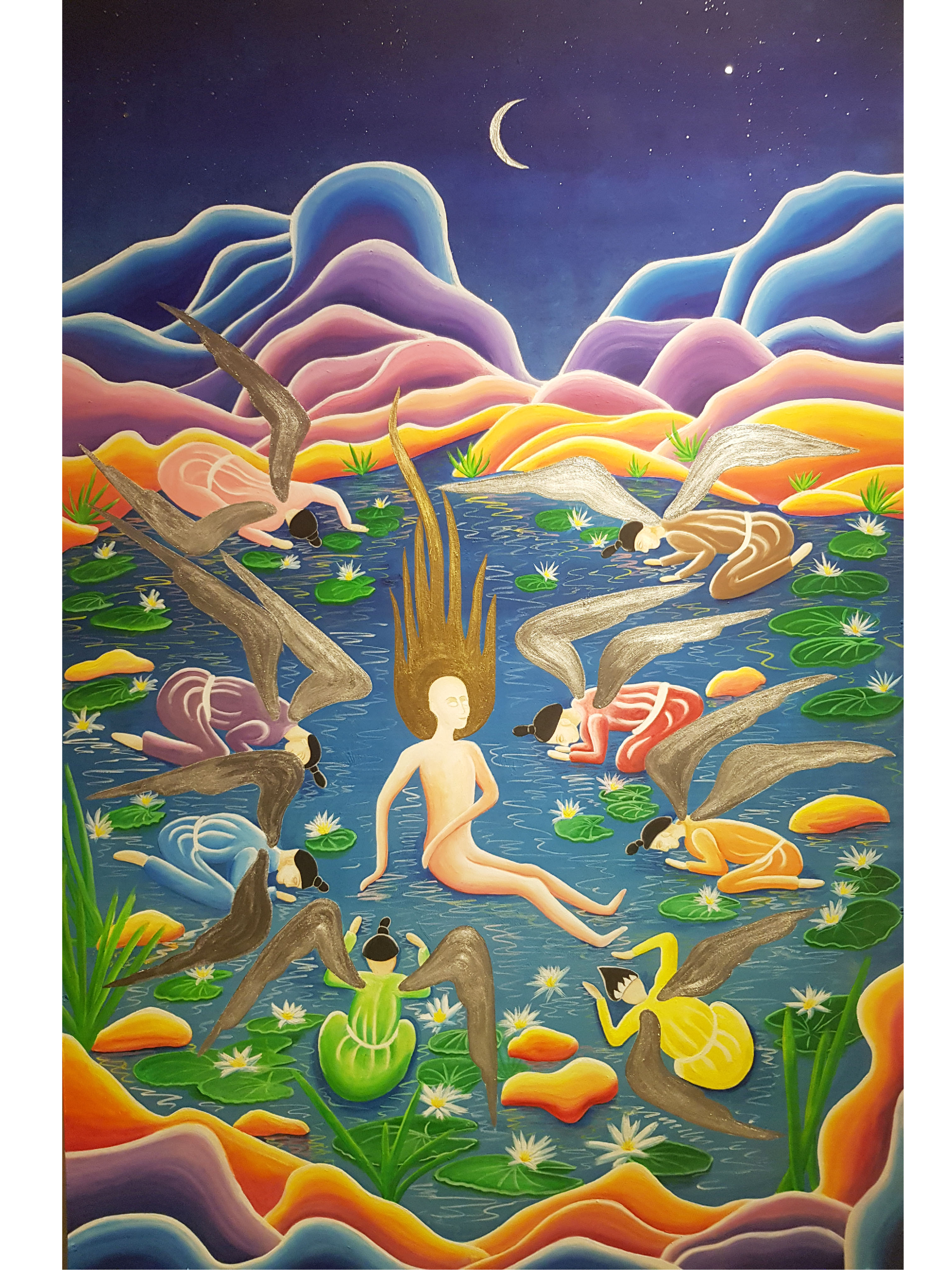 Acrylic, and metallic paints, on 6mm plywood and wooden frame 1200 mm x 800 mm. For full photo gallery please see the Art page, or contact directly for more information.
